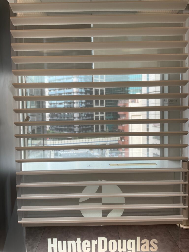 先日、ハンターダグラスから、シルエットシェードの進化版ともいえる新商品「ヘイロー(Halo)」が発売されたとのことで、東京出張のついでにショールームへ見学に行ってきました😊✨